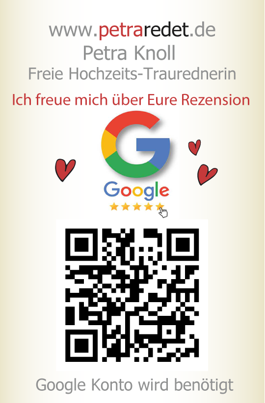Unsere freie Trauung mit Petra war wunderschön. Vielen Dank für die liebevolle Gestaltung und diesen besonderen Tag!